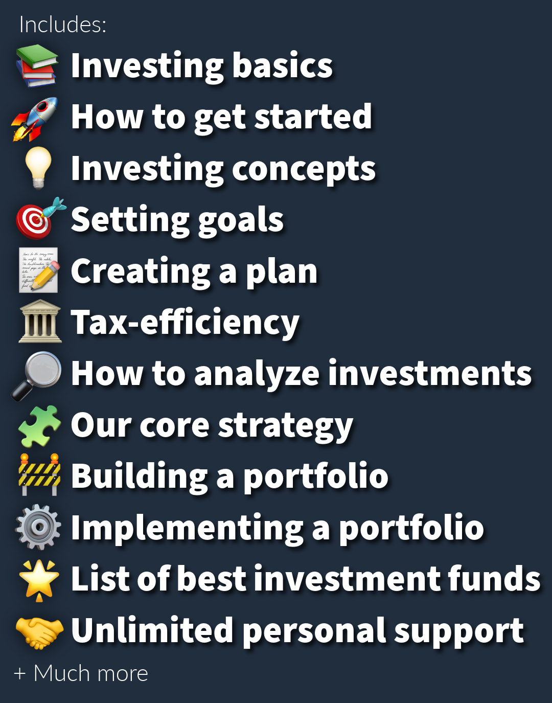 The course is packed with insights, analysis, guides, studies, and data, offering over 10 hours of content just from careful reading alone. But if you are actively engaging in the coursework by setting up an investment account, defining goals, creating a plan, analyzing funds, and building a portfolio, it easily becomes a 25+ hour experience on your first pass. And with so much practical and timeless value, it is a resource you will likely revisit again and again.