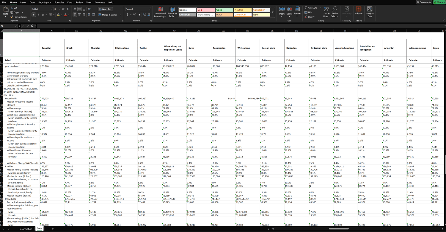 This is the 2024 U.S. Census Bureau raw data with all of the ethnicity filters (ancestry/race) that we use to create our handmade graphs for The Personal Finance Wizards, LLC set to active. This data is presented exactly as provided by the U.S. Census Bureau, so any potential discrepancies would be entirely unintentional.