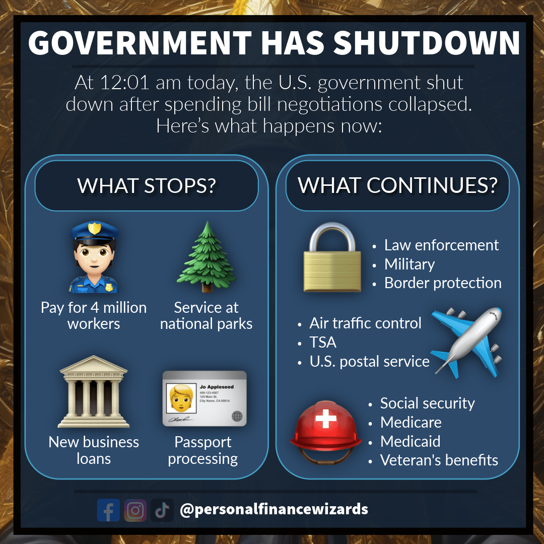 A government shutdown happens when Congress cannot agree on a new spending bill in time, leaving the federal government without the money it needs to operate normally. That is what happened today after both Democratic and Republican proposals failed...