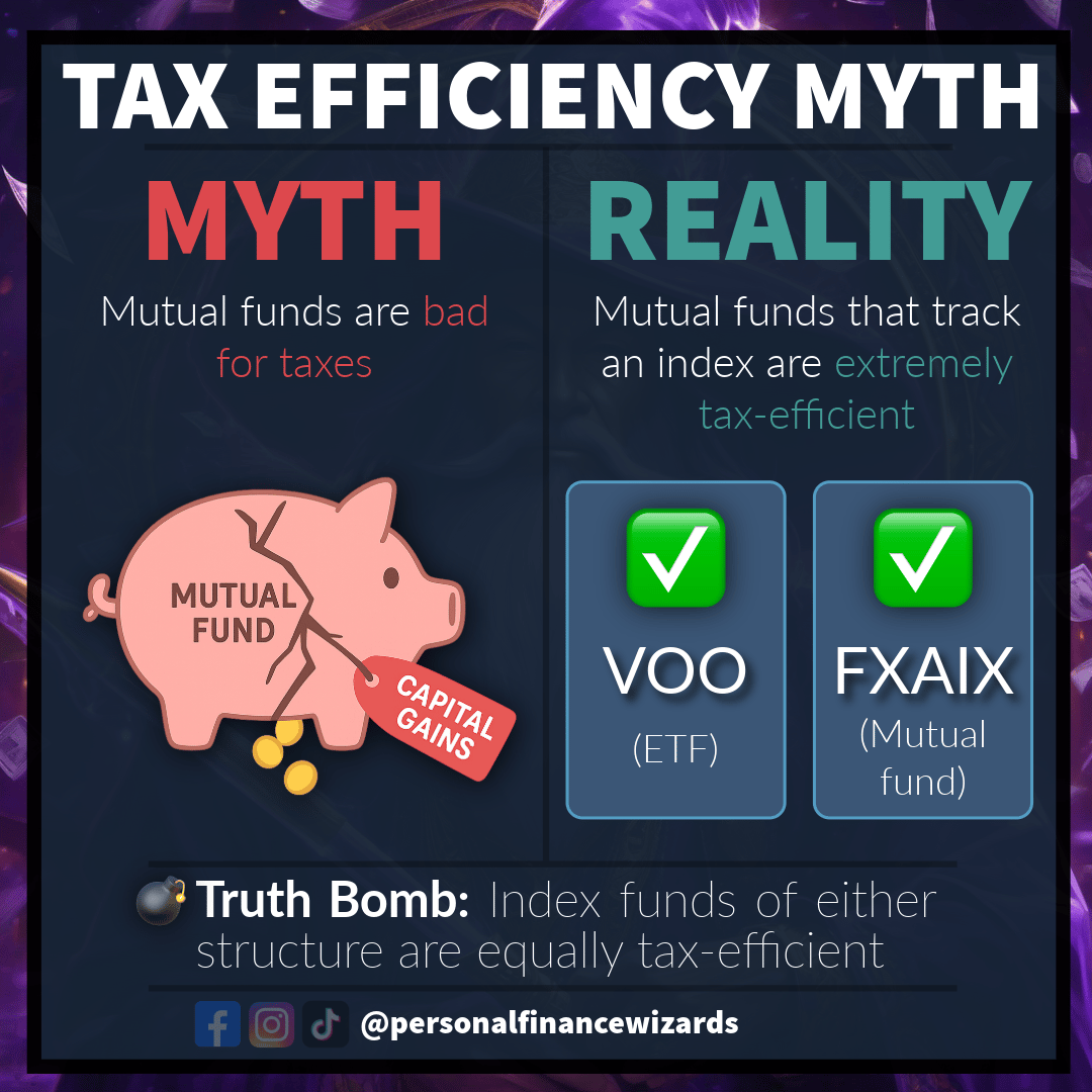 A common myth that we hear is that ETFs are more tax-efficient than mutual funds. While this is normally true when comparing ETFs to actively managed mutual funds, it does not hold up for passively managed mutual funds like FXAIX. Actively managed m...