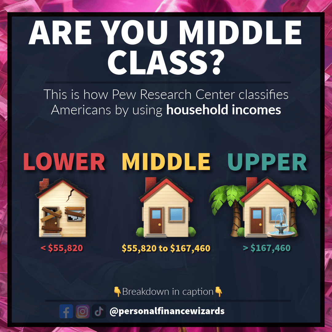 The Pew Research Center classifies Americans into classes using the national median household income as a benchmark. To find the ranges, they take two-thirds of the median to define the lower class cutoff and double the median to define the upper cl...
