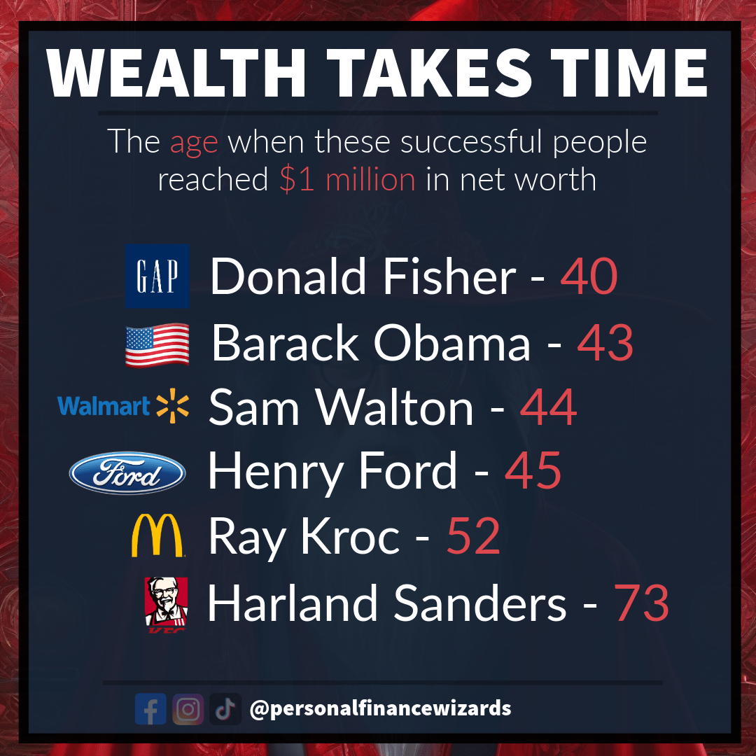 Achieving significant success does not happen overnight, as shown by these famous examples. In almost all cases, it takes a tremendous amount of time to become a millionaire. In fact, the average age for someone in America to reach a net worth of $1...