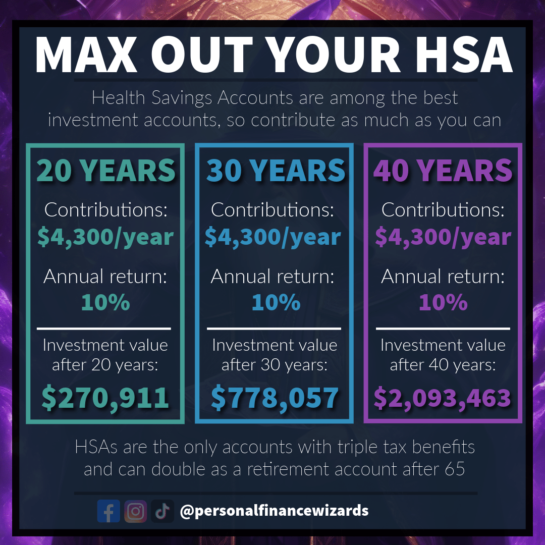 HSAs are among the best investment accounts available, offering a rare triple tax advantage: - Tax-free contributions: Pre-tax dollars are contributed, reducing your taxable income. - Tax-free growth: Dividends and capital gains grow without being t...